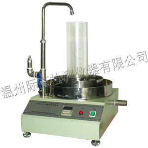 土工布垂直滲透儀用于測(cè)定各種類型土工布的透水性能,其性能符合GB/T15789-1995 《土工布透水性測(cè)定方法》標(biāo)準(zhǔn)中對(duì)儀器的要求。 1、裝夾試樣:取出夾持器21,松開壓緊螺母20,將試樣平整地放置在下夾持器平面上,壓上上夾持器,然后擰緊壓緊螺母20,將夾持器安放在定位支承銷19上,再將溫度計(jì)3插入夾持器上的小孔。 2、接通電源,打開電源開關(guān)10,在時(shí)間計(jì)數(shù)器9上設(shè)定收集時(shí)間 值。(本儀器時(shí)間計(jì)數(shù)器9的設(shè)定范圍為0~99.99秒,按GB/T15789-1995標(biāo)準(zhǔn),設(shè)定時(shí)間>10秒) 3、確定放水口18處于關(guān)閉狀態(tài),進(jìn)水口16外接穩(wěn)壓水源后,打開 流量控制開關(guān)5,將出水嘴2對(duì)準(zhǔn)水位量筒4往儀器內(nèi)注水,直至水位超過試樣平面達(dá)到內(nèi)容器6的高度,此時(shí)水頭壓差為零。 4、待水平面穩(wěn)定后繼續(xù)注水,水開始溢出內(nèi)容器,調(diào)節(jié)流量控制開關(guān)5控制水的流量以得到固定的壓差,即水位量筒4內(nèi)的水位穩(wěn)定,此時(shí)溢出的水通過排水口17排出。 5、待水頭壓差穩(wěn)定30秒后,按下【工作】鍵8,時(shí)間計(jì)數(shù)器9開始計(jì)時(shí),同時(shí)電磁閥轉(zhuǎn)換出水口,此時(shí)溢出水流通過取水口11流出。流出水量用容器收集,再用量筒測(cè)出具體數(shù)值,精確到10mL(收集的水量應(yīng)>1L,如不到1L,應(yīng)酌情加大時(shí)間設(shè)定值);達(dá)到設(shè)定時(shí)間后,電磁閥動(dòng)作,此時(shí)溢出水從排水口17排出。 6、在進(jìn)行上步驟的同時(shí),讀取溫度計(jì)3上的溫度值,水溫應(yīng)在10~25℃(精確到0.1℃)。 7、重復(fù)第6.3~6.6條步驟??偣驳玫?span lang="EN-US">5組讀數(shù),水流速度均勻分布在0mm/s—60mm/s之間。試驗(yàn)時(shí)水流速度從最高做到最低。 8、重復(fù)第6.2~6.7步驟,在同一水壓下將余下試樣測(cè)試完畢。 9、關(guān)閉電源開關(guān)9,拔下電源插頭14。 10、打開放水口18將儀器內(nèi)的剩水排空。 11、將測(cè)試數(shù)據(jù)按GB/T15789-1995處理。